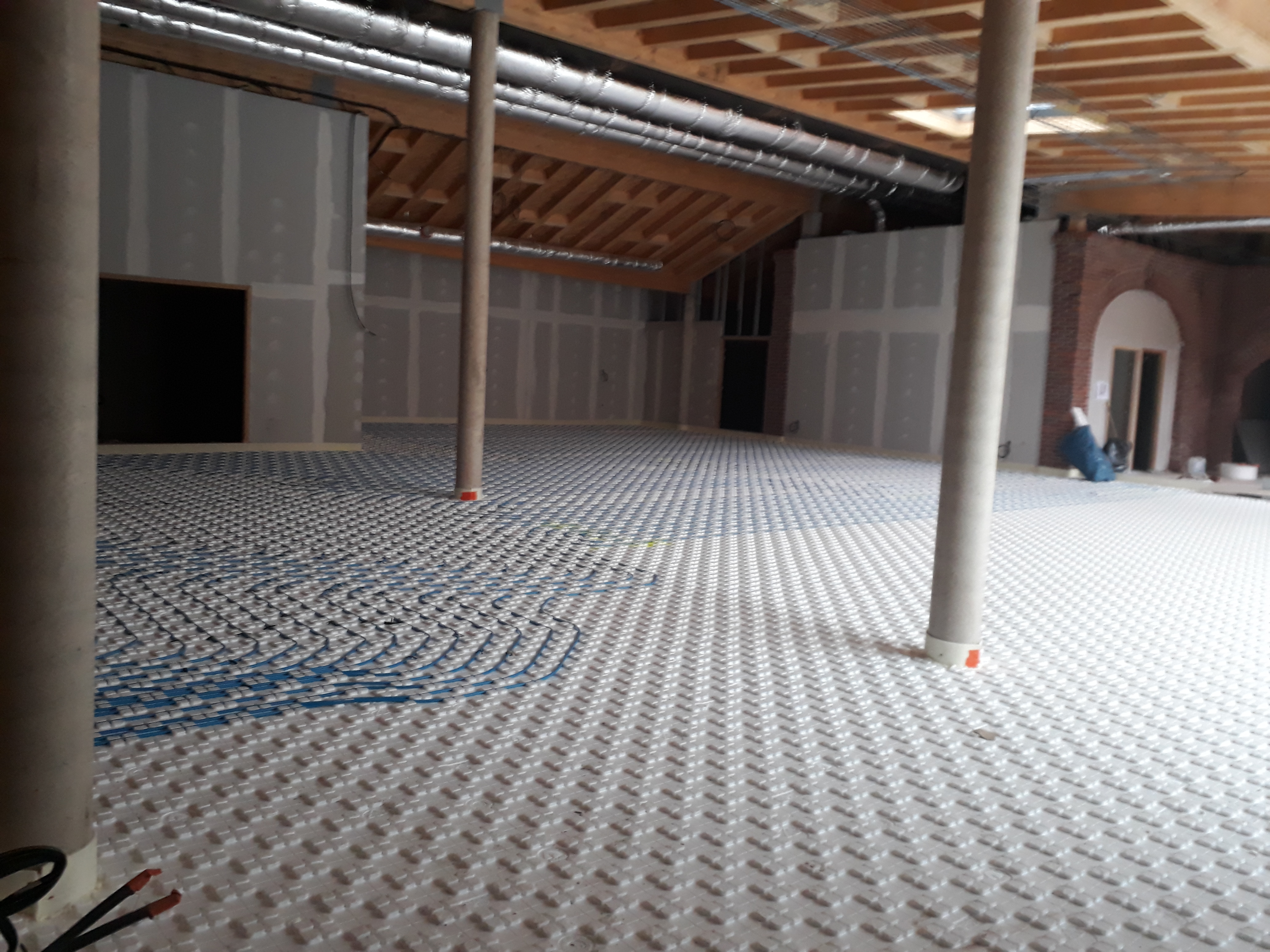 La solution sol chauffant ultra réactif THERMACTIF présentée par THERMACOME et ANHYDRITEC a séduit le Bureau d’Etude CADETEL qui souhaitait de la réactivité, la salle de spectacle étant occupée par intermittence et disposant de grandes baies vitrées.